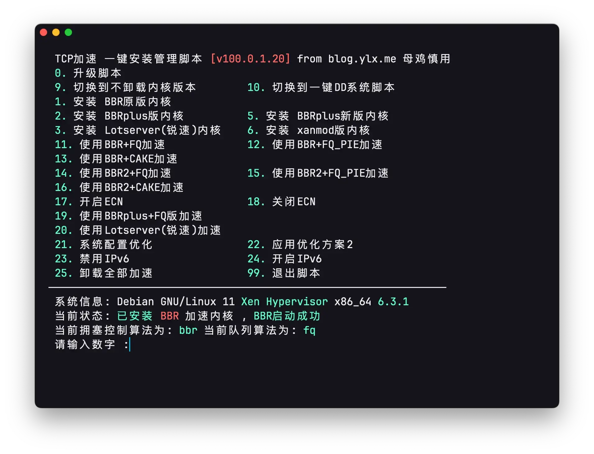 安装 BBR 网络加速脚本