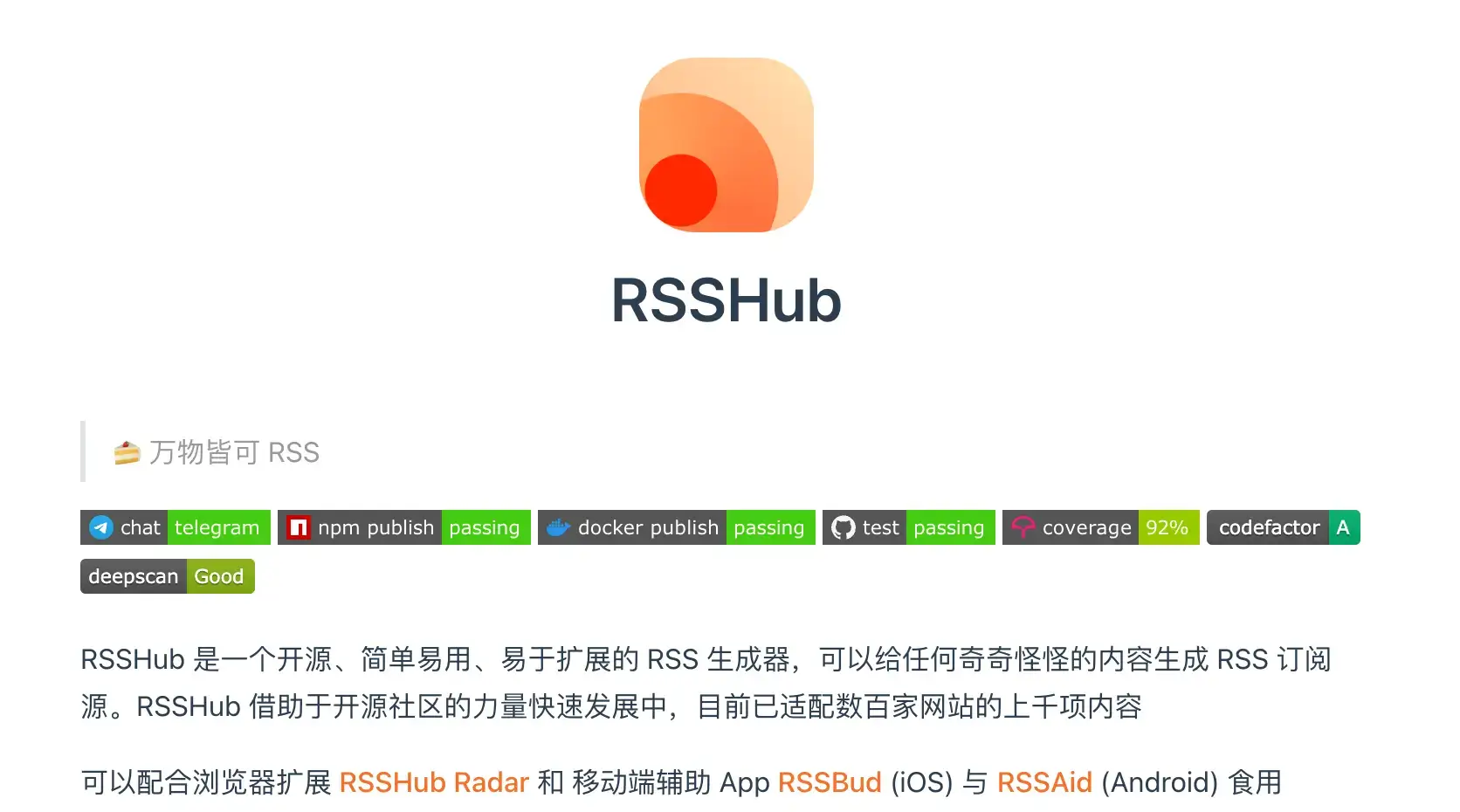 以下 Rss 订阅链接是结合 万物皆可 RSS 的 RSSHub 打造