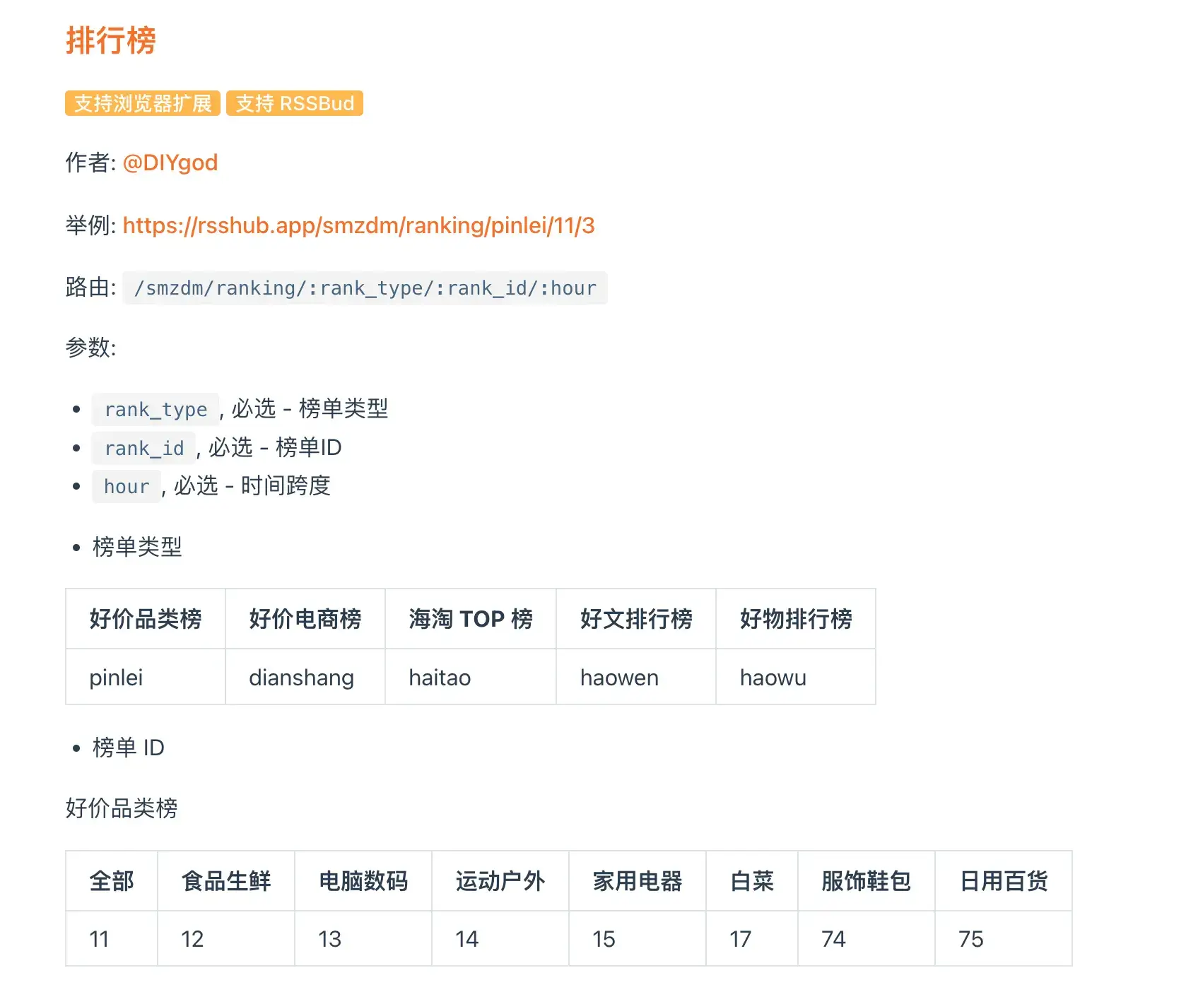 RSSHub/购物/什么值得买 https://docs.rsshub.app/shopping.html#shen-me-zhi-de-mai
