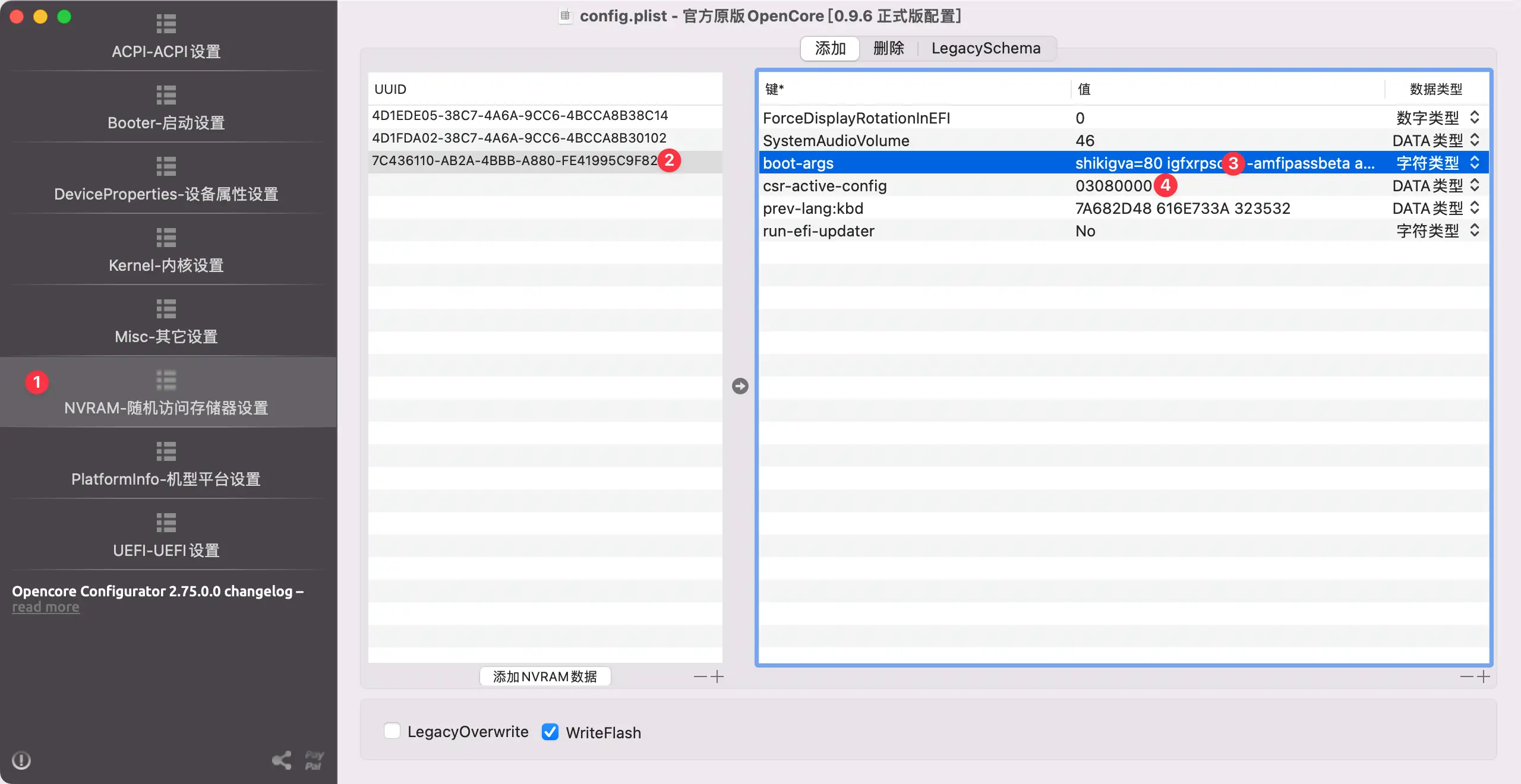 - NVRAM-随机访问存储器设置 boot-args 添加