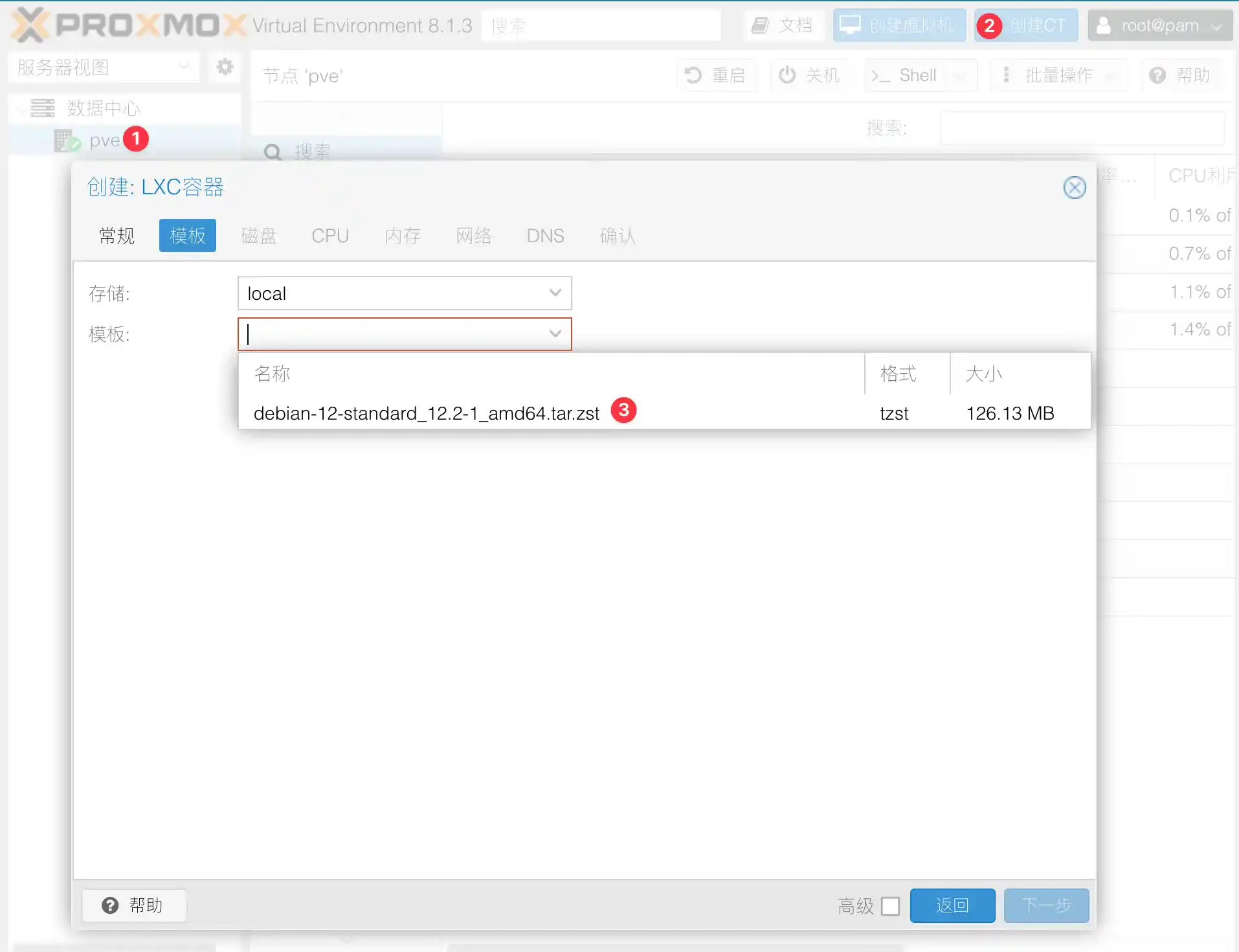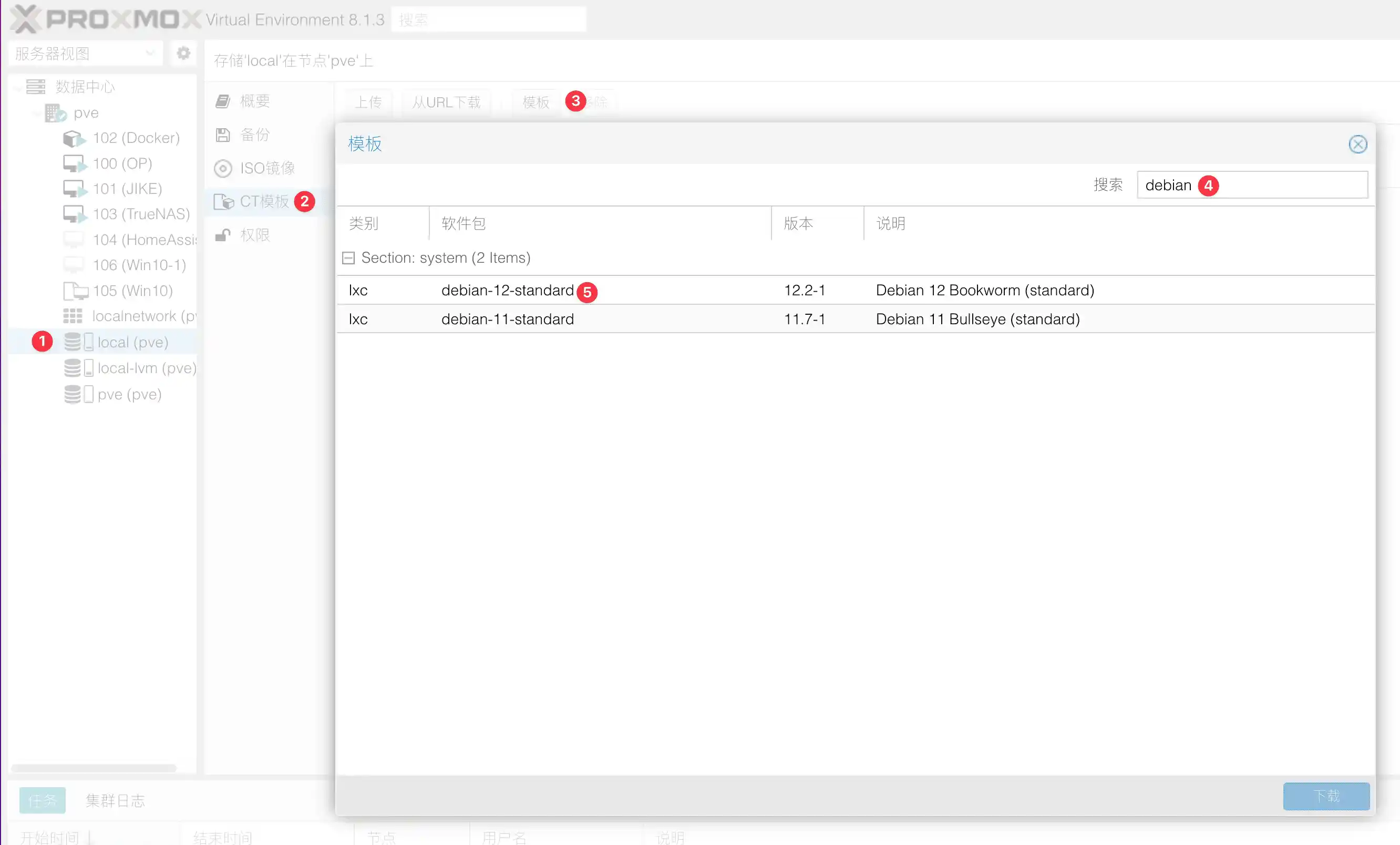下载模板、创建 特权\LXC