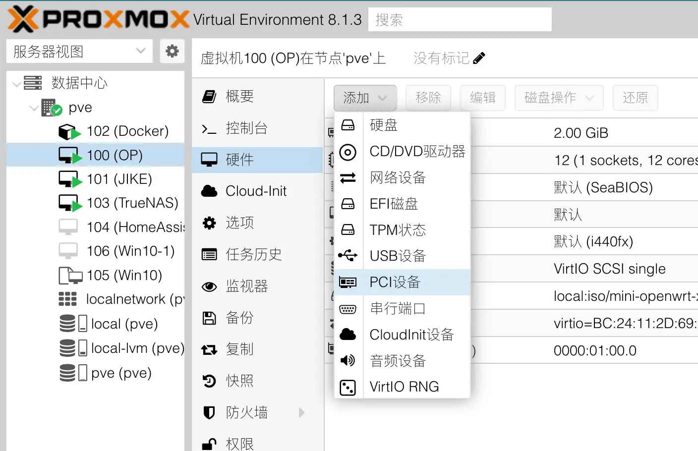 添加 PCI 网卡