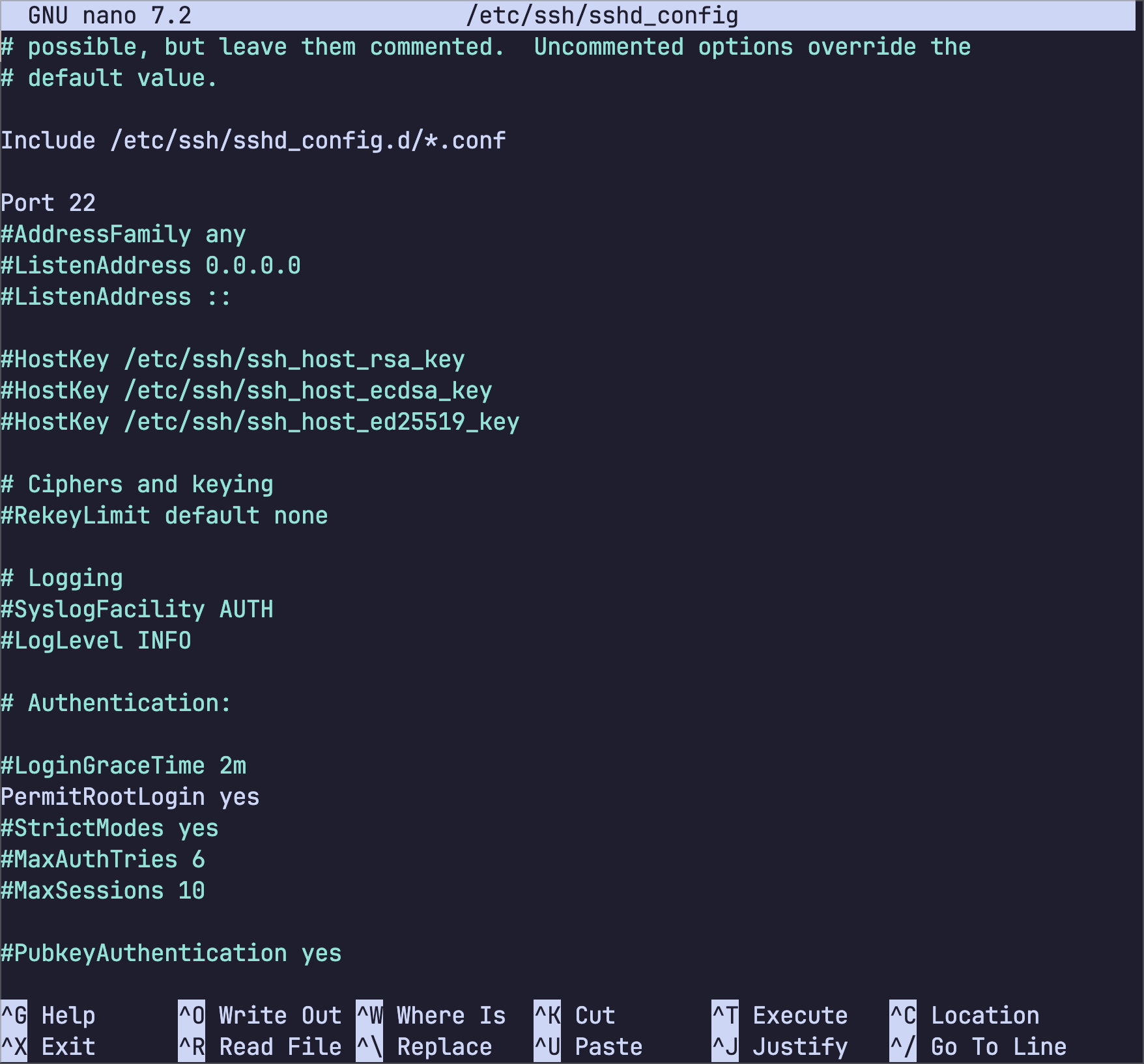 开启SSH登录 1 nano /etc/ssh/sshd_config