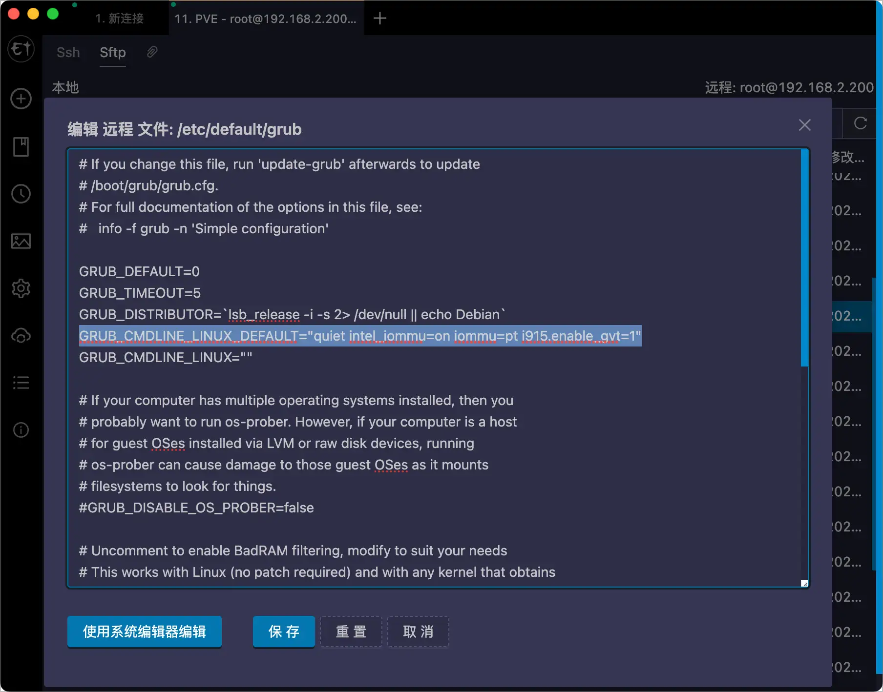 打开硬件直通 编辑Grub